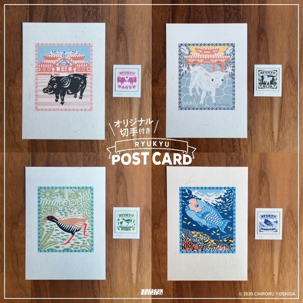 \ 数量限定 /【オリジナル切手付き】琉球ポストカード 4枚(4柄)セット[沖縄特産月桃紙使用]