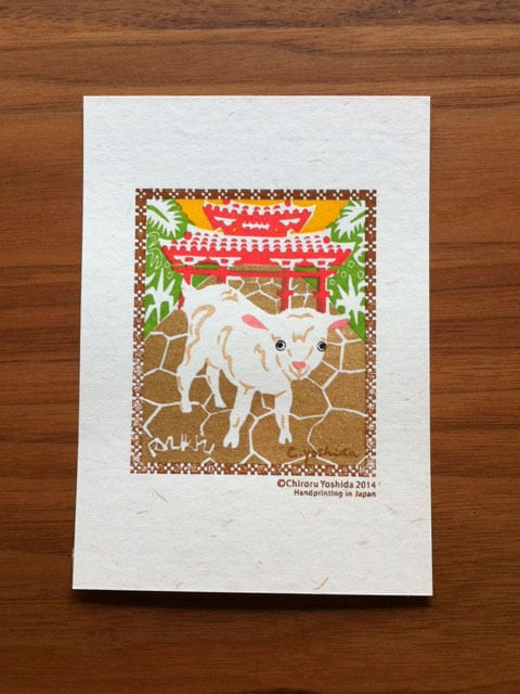 プリントゴッコで一色一色重ね刷りしたハンドメイドポストカードです。